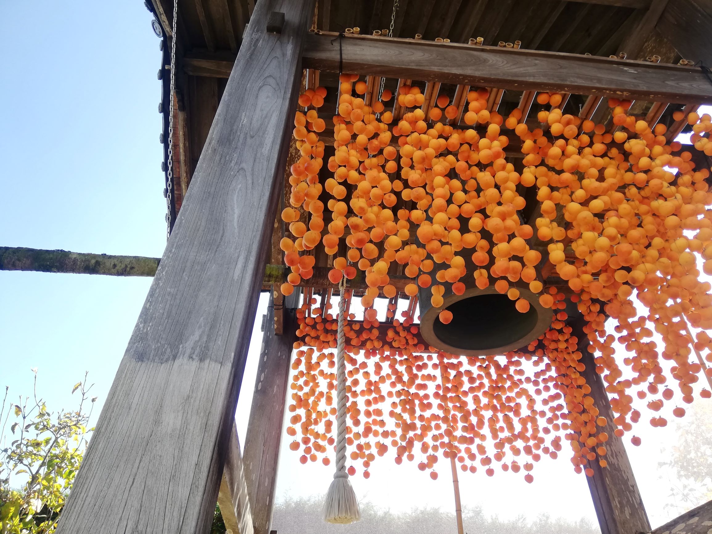Pour nous la culture se trouve aussi dans les champs de kaki ou dans la manière dont les japonais les laissent sécher suspendus au soleil sur les toits ou ici dans ce village au clocher du temple. Un paysage de plus en plus rare aux vues des nouvelles règles sanitaires.